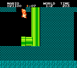 Get 100+ lives: At the end of stage 3-1, there are steps with 2 koopa troopas walking down them. Let the first troopa pass by. When the second troopa gets almost to the bottom, if you jump on the very EDGE of the troopa, it is possible to continue jumping automatically, and in the process gain 1-ups. I only got this to work ONCE, so i don't fully understand the trick to make it work. Once you amass 10 lives, instead of having numbers for lives, you will have symbols. Try not to get more than 100 lives, because I heard that the game will mess up if you do.